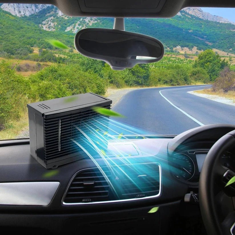 These evaporative system adds moisture so the air coming out feels less dry than a standard fan. Lightweight build moves between a car, truck, RV, bedroom, or garage without reinstalling, black finish blends with most car interiors without clashing with the dashboard.