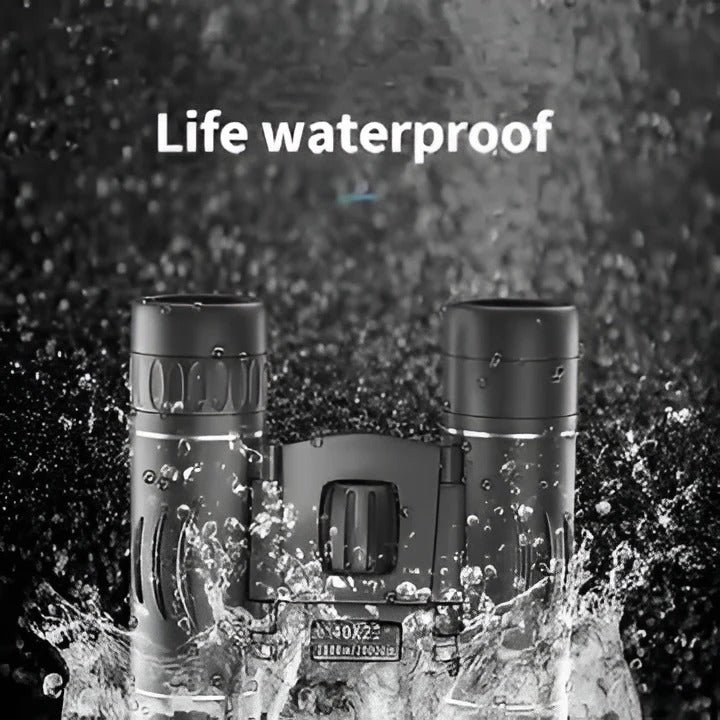 The binoculars feature a foldable, compact build designed for portability. The exterior housing is made to help protect the device during regular handling, though performance may vary based on use.