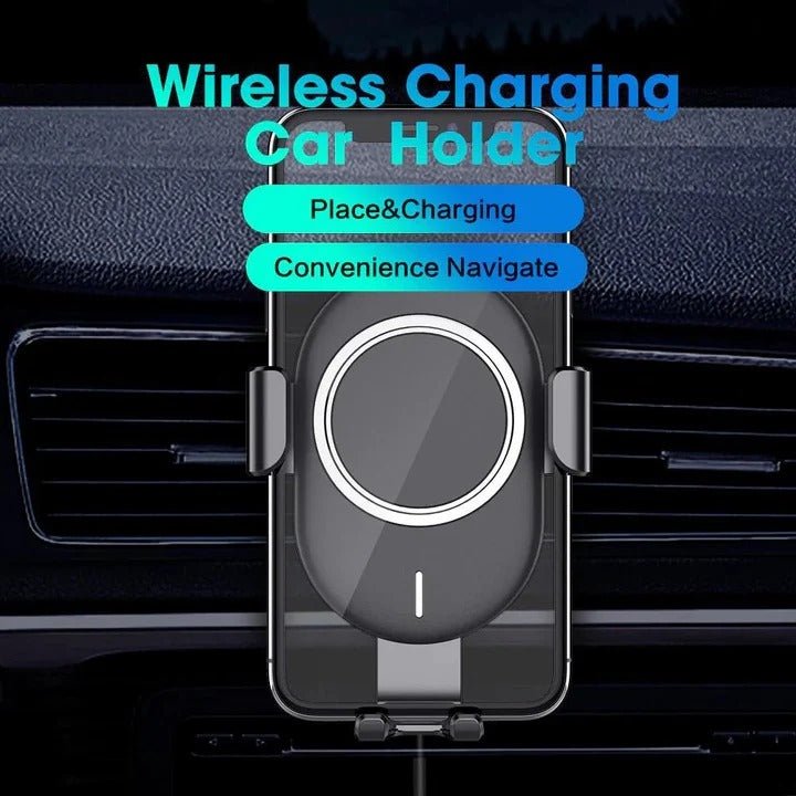 This wireless car charger is designed with motorized arms that open and close automatically when a compatible phone is placed into the mount. The auto-clamping mechanism is intended to allow one-handed placement and removal of the device. Actual responsiveness may vary depending on phone size, weight, and power availability.