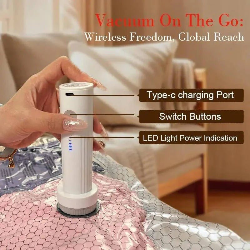 - 4000PA CORDLESS PUMP: Pulls air from thick fabric layers and compresses each bag fully in 10 to 15 seconds.