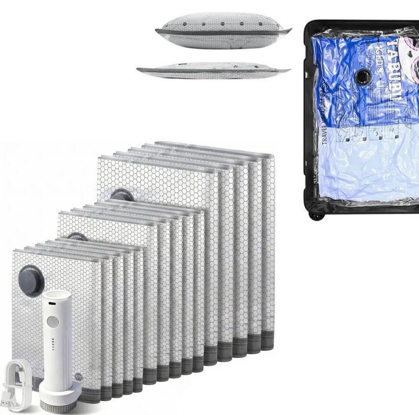 Cordless Vacuum Compression Set, 15 Bags, Dual Zipper, USB-C Pump