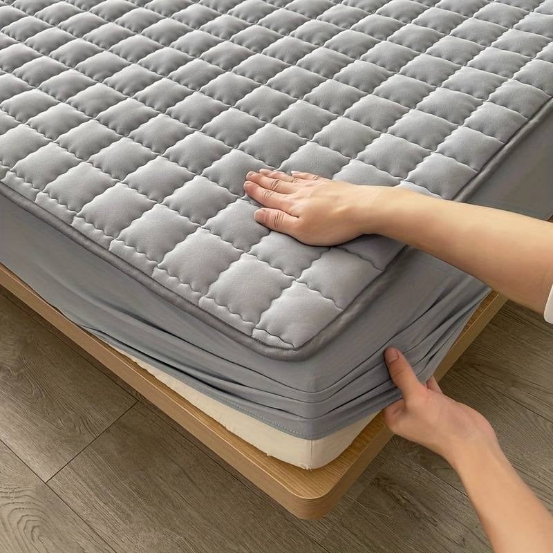 The fitted elastic edges pull down and wrap around the mattress corners to anchor the cover securely, keeping it from shifting or bunching even with movement during sleep.