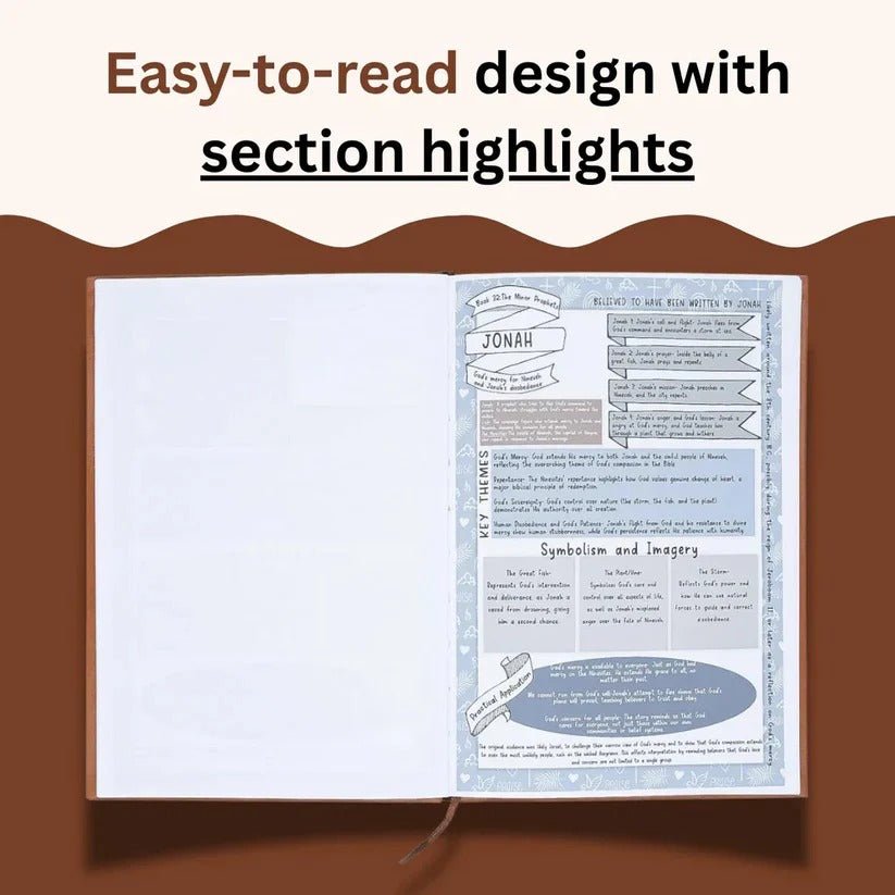 • 66 BOOK SUMMARIES: Every book of the Bible gets a dedicated one-page summary covering main themes and key characters.