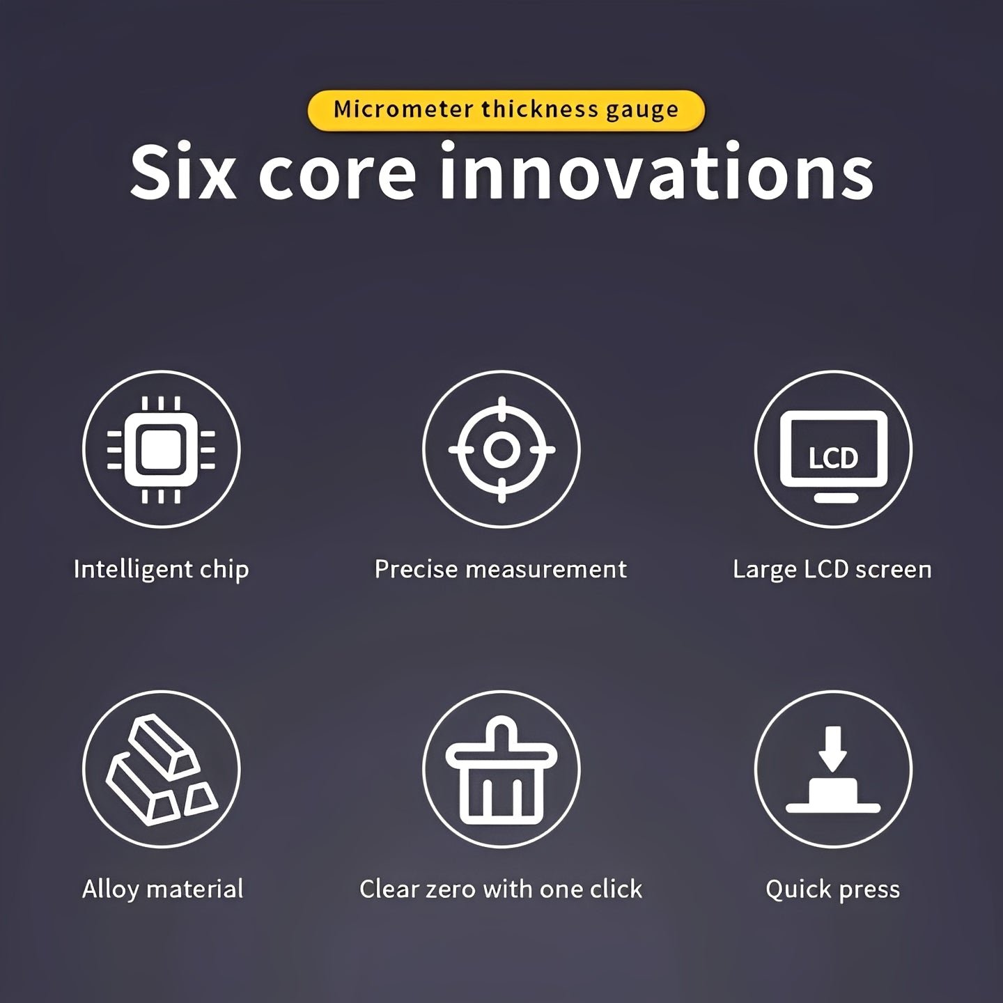 This digital thickness gauge is designed to measure the thickness of various materials within its specified range. It provides numerical readings based on contact between the measuring surfaces and the material being tested. Measurement resolution and consistency depend on calibration, handling, and material type.