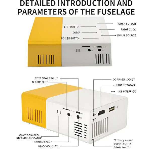 This mini projector is designed for displaying media in various settings. It includes support for HD-quality input and is intended for viewing movies, photos, presentations, or games on a wall or screen. Actual image clarity and brightness may vary depending on lighting conditions and projection distance.