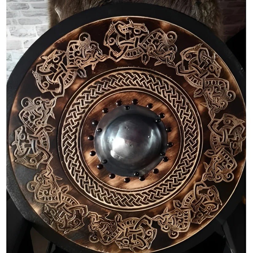 Medieval Style Wooden Round Shield with Multiple Design Patterns