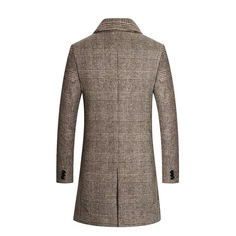 Men’s Plaid Wool Coat with Cotton Padding and Lapel Collar