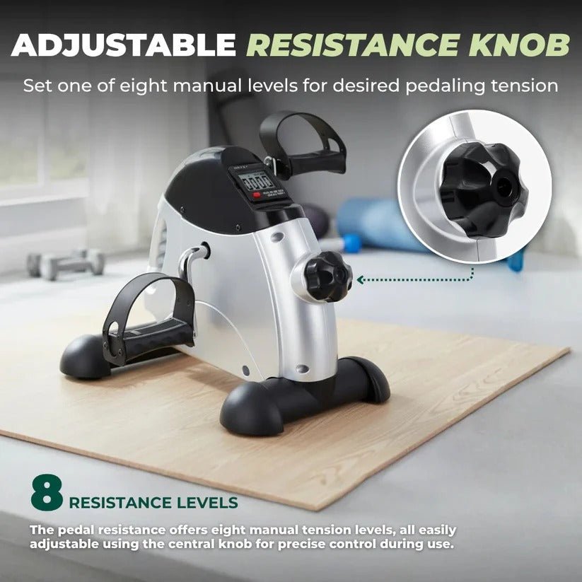 Mini Stationary Foot Cycle with Variable Resistance and LED Display for Seated Workout