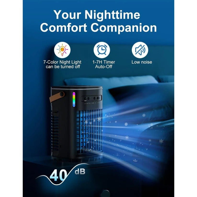 Rooms that don’t get central air stay uncomfortable through the whole workday. You bring in a loud unit and it runs dry before your workday finishes. Set it on the desk and stay cool through calls, work sessions, and sleep.