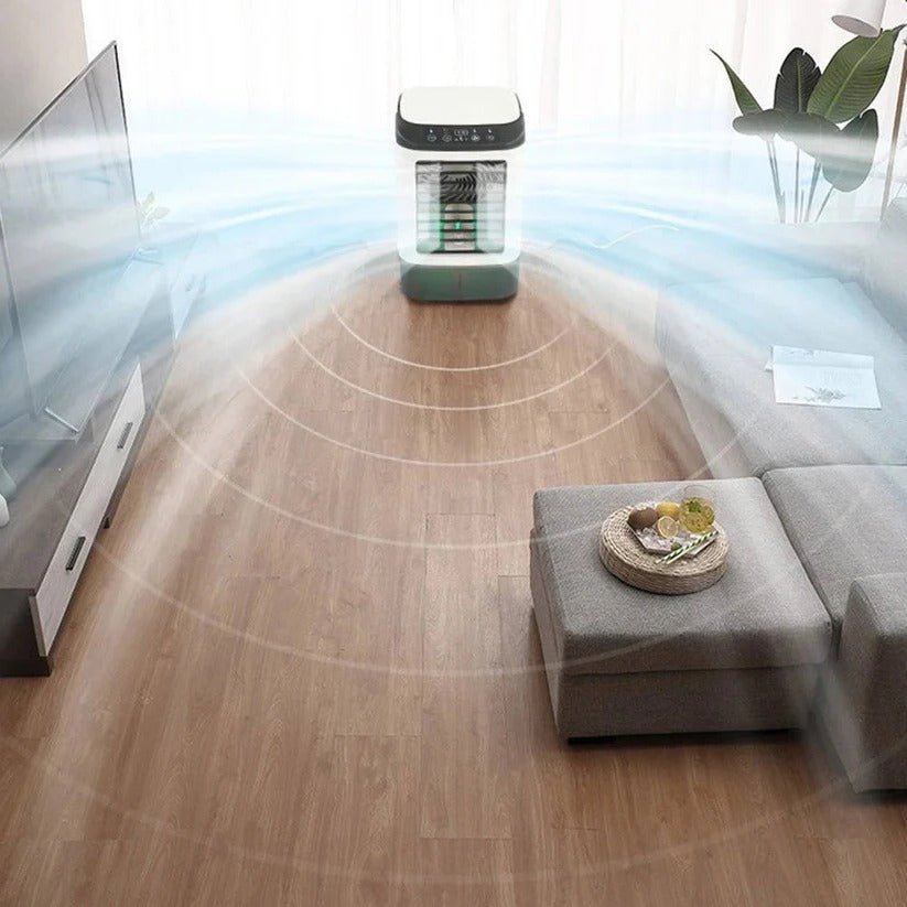 The bedroom stays too warm to fall asleep comfortably on summer nights. You run a fan, wake up dry-throated, and the room still feels warm. Sleep through warm nights, cool a desk setup, or place it where heat builds up.