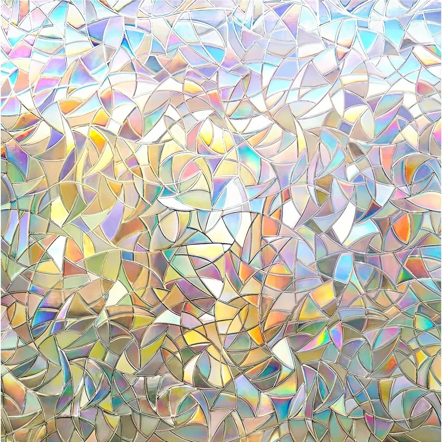 This static cling window film is designed to provide partial privacy while allowing natural light to pass through glass surfaces. The rainbow-patterned design creates a decorative visual effect when light passes through, which may add color and visual interest to a room. Privacy performance and visual appearance may vary depending on lighting conditions, viewing angle, and glass type.