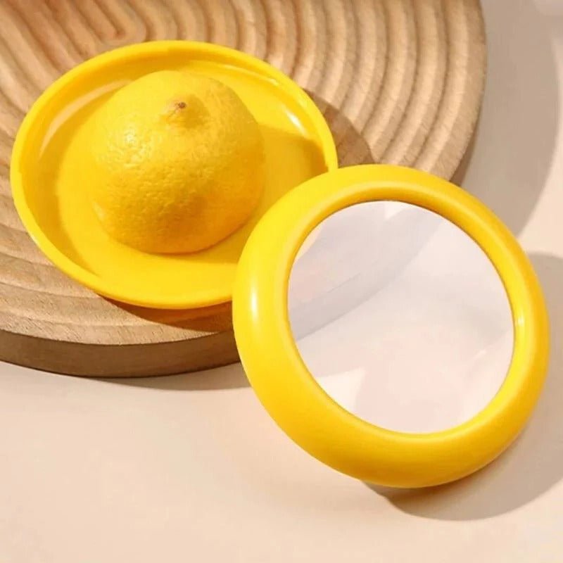 The silicone cover presses over the cut side of a fruit or vegetable and the flexible edges stretch to grip and seal it. The silicone molds to different shapes and sizes so the same cover works on a half onion, lemon wedge, or apple slice. After use you rinse it off or run it through the dishwasher.