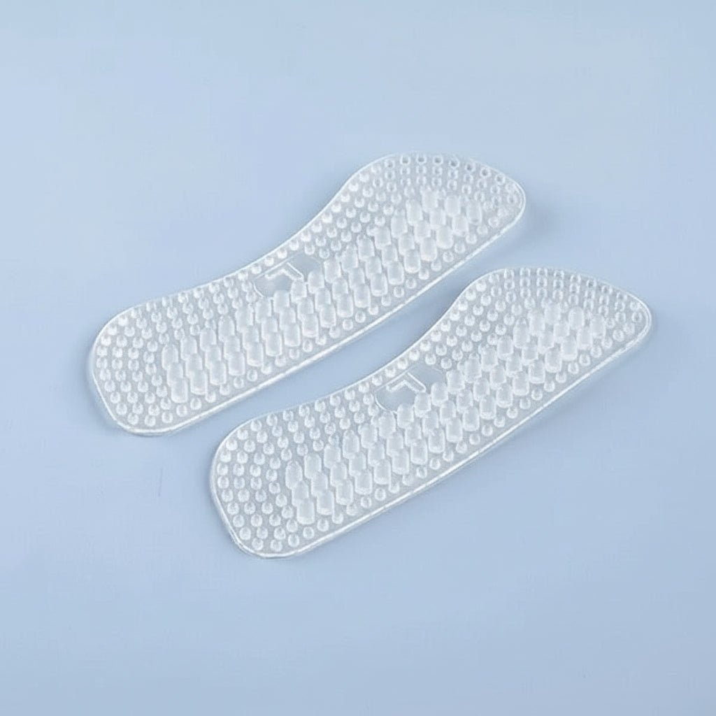 These heel grips stick inside the back of your shoe using adhesive backing that holds through daily wear. The textured bumps press against your heel to create cushioning with each step you take. Made from bendable material, they absorb impact effectively when your foot hits the ground.