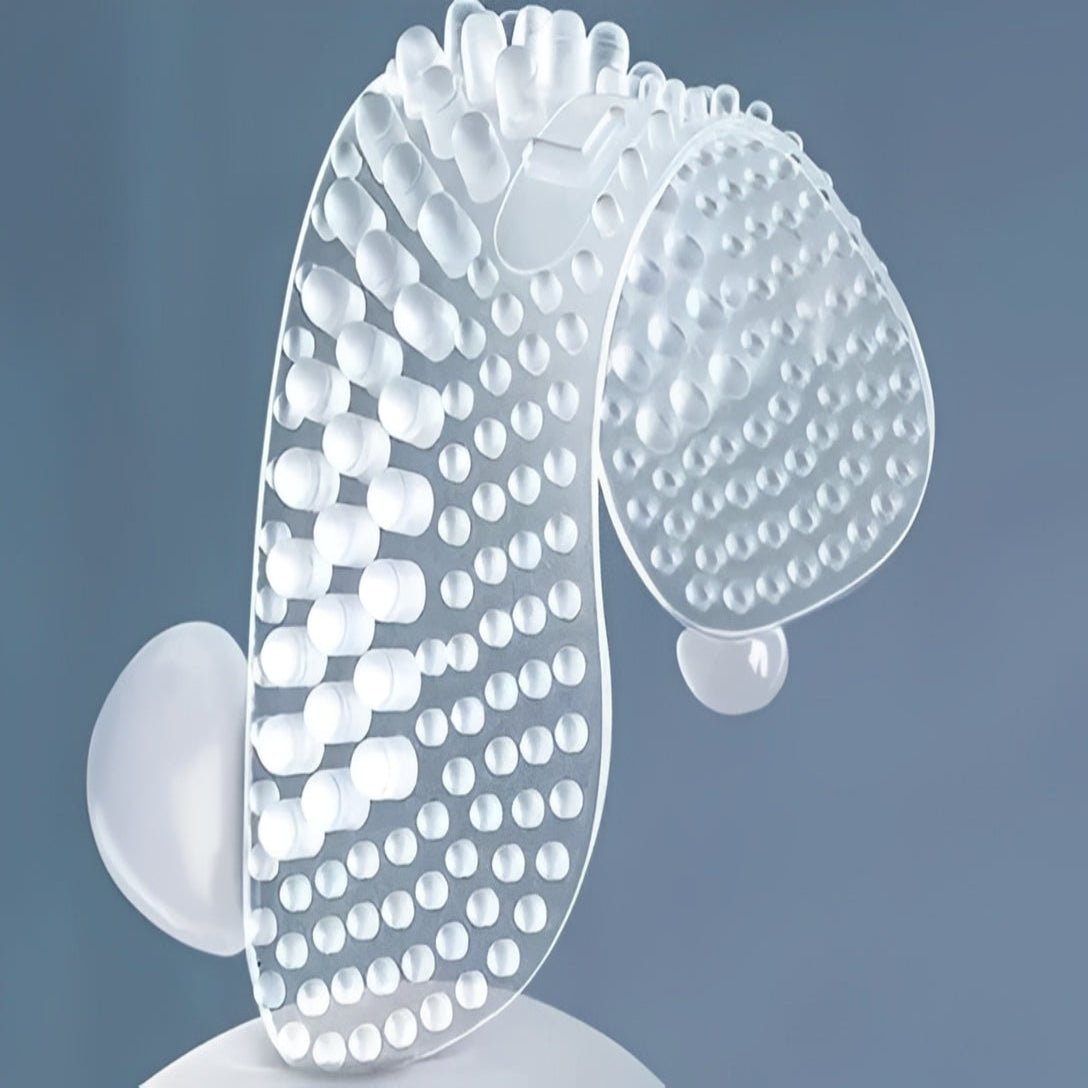 These heel grips stick inside the back of your shoe using adhesive backing that holds through daily wear. The textured bumps press against your heel to create cushioning with each step you take. Made from bendable material, they absorb impact effectively when your foot hits the ground.