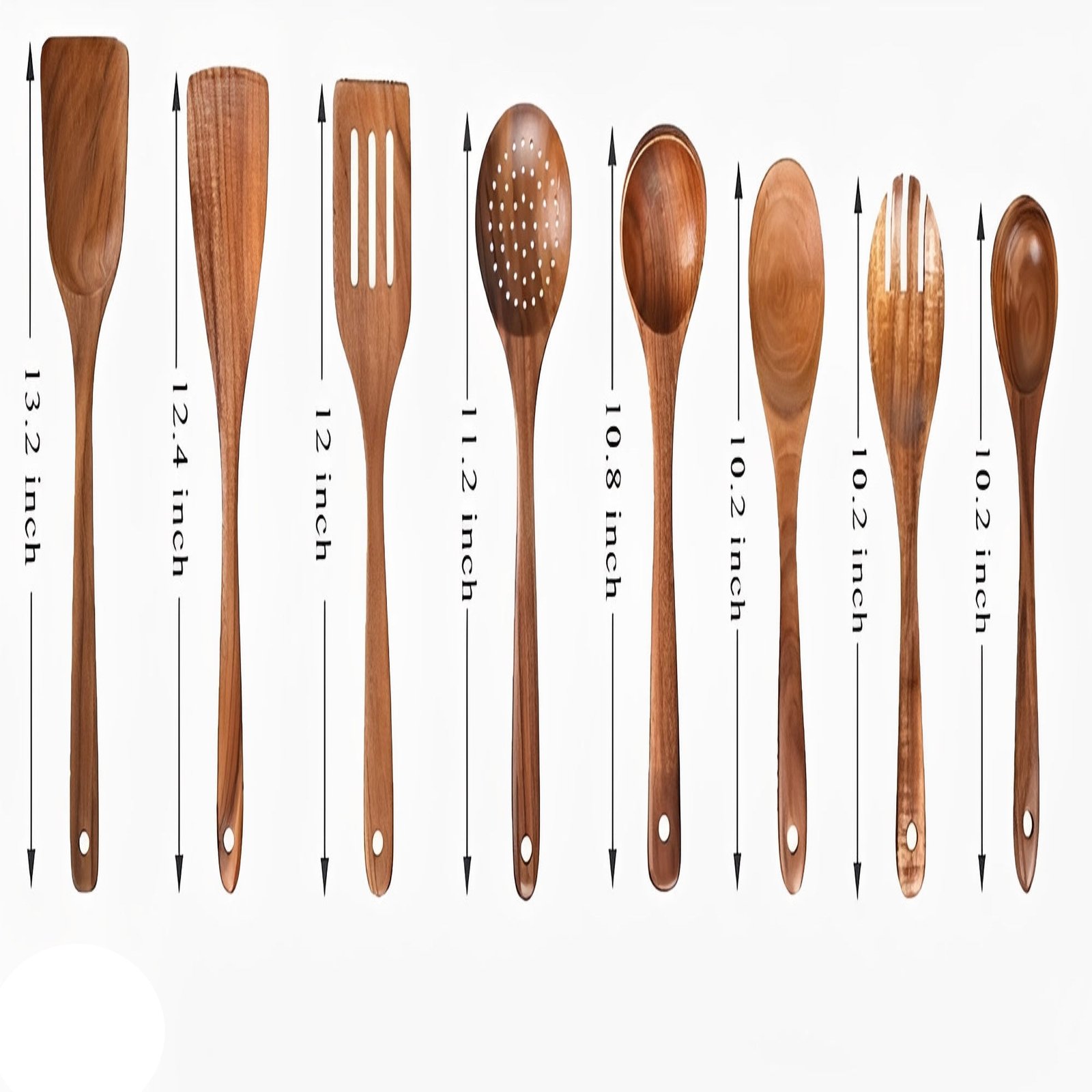 Solid Teak Wood Cooking Tools Utensil, 8 Piece Set