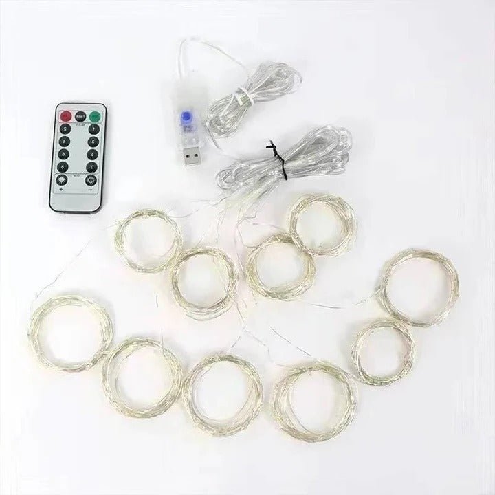The light set includes eight lighting patterns and four adjustable brightness levels. It can be managed with the included remote or the in-line USB controller. Multiple color variations are available, including white and multicolor choices.