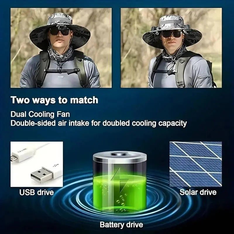 Ventilated Sun Hat with Built In Dual Solar Fans for Men and Women Outdoor Use