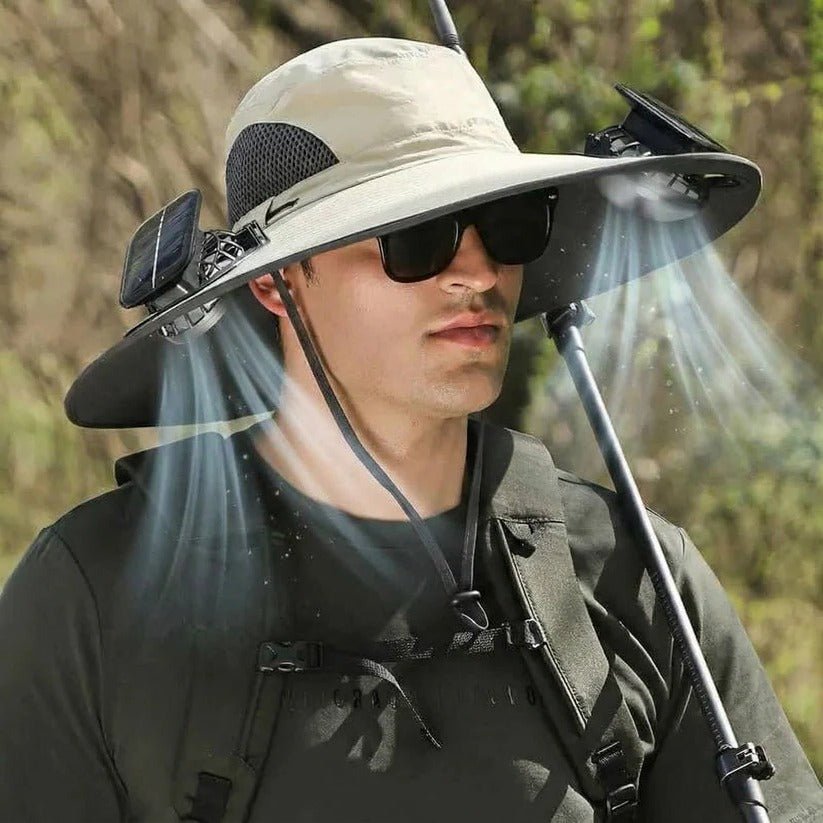 - DUAL SOLAR POWERED FANS: Two brim fans pull air across your forehead and run off the solar panel while you wear the hat.