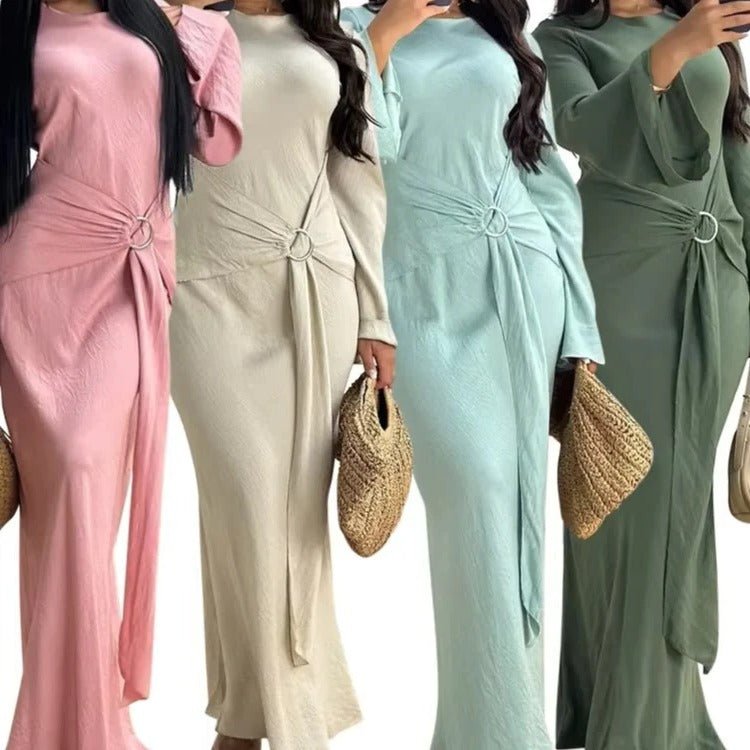 This long sleeve abaya dress is designed to support modest dressing for religious observance and formal occasions. It may help provide a refined appearance for events such as Ramadan prayers, Eid gatherings, or family celebrations while maintaining comfort throughout extended wear.