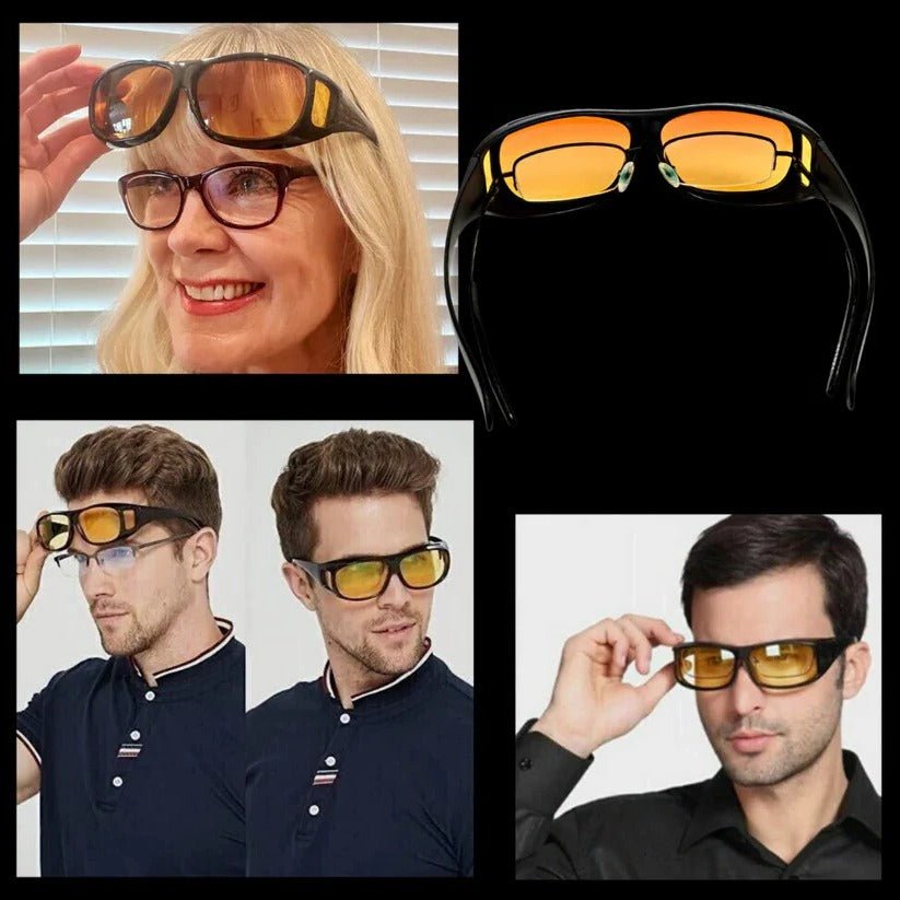 • 1 x Pair of Over-Frame Night Driving Glasses with Polarized Lenses, Orange Tint, and Extended Side Coverage